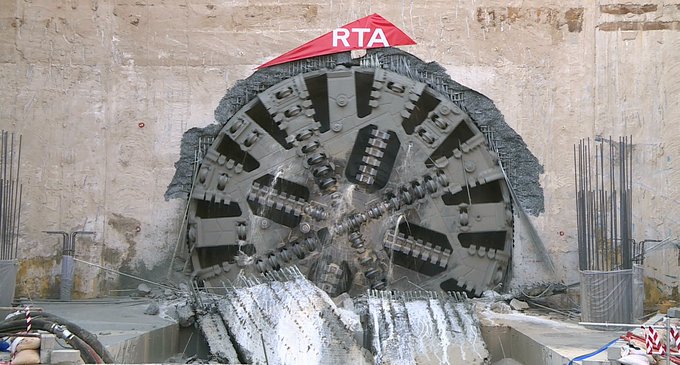 Mattar Al Tayer, Director-General and Chairman of the Board of Executive Directors of the RTA, said the giant tunnel boring machine, branded 'Al Wugeisha Expo 2020', can crush stones and penetrate through sandy layers or any other soil components encountered during the drilling process.
